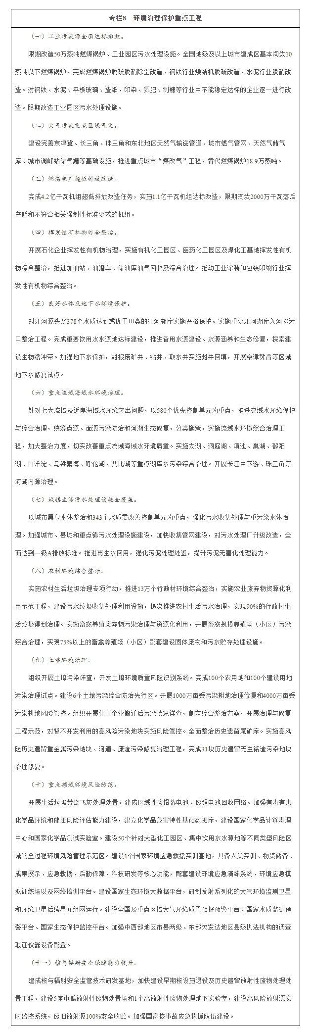“十三五”期間,國家組織實施工業污染源全面達標排放等25項重點工程,建立重大項目庫,強化項目績效管理。項目投入以企業和地方政府為主,中央財政予以適當支持。